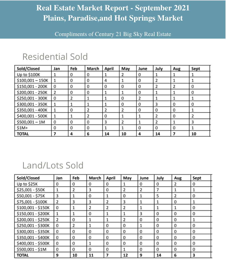 Click on the Read More link to view the complete Real Estate Market Report for Plains, Paradise, and Hot Springs for September 2021.